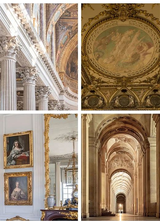 路易十四興建的凡爾賽宮講究對稱美學(xué),充斥著大理石、石膏裝飾圖案、手繪天花板、鏡子鑲嵌片等華麗元素,整體看起來十分壯觀,被視作巴洛克風(fēng)格的典型代表。
