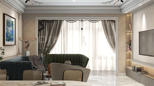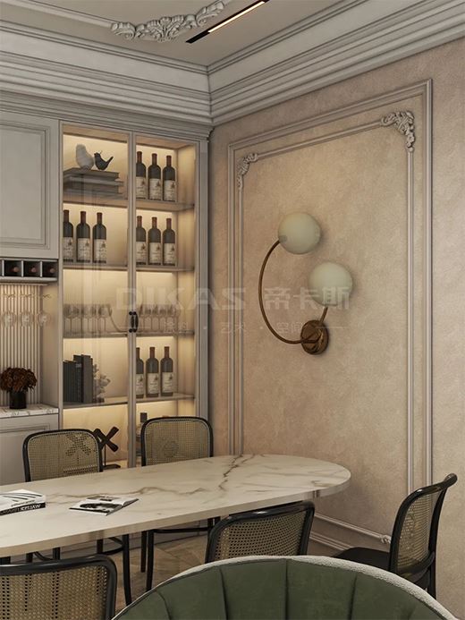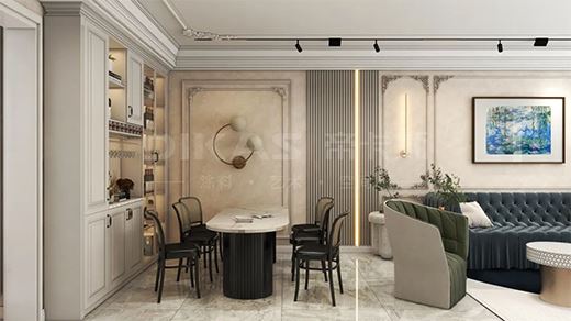 客餐廚一體化設(shè)計以開放的姿態(tài),法式韻味濃厚的餐邊柜提供功能性的收納,加深層次的內(nèi)在聯(lián)結(jié)。