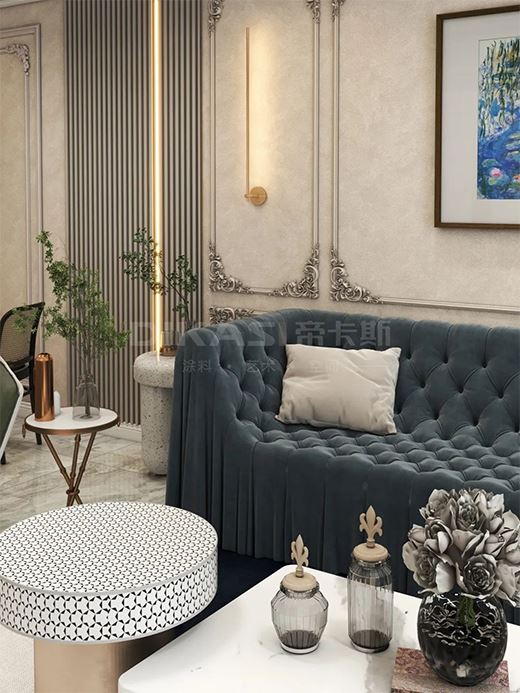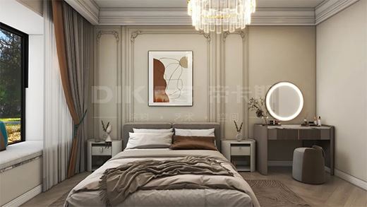 貴族莎絨 · 臥室臥室延續(xù)了客廳的法式風(fēng)格,高貴華美的「貴族莎絨」鑲嵌在石膏線上,巧妙融合柔和與舒適,優(yōu)雅的浪漫氛圍加持,散發(fā)出超越時間的獨特氣質(zhì)。