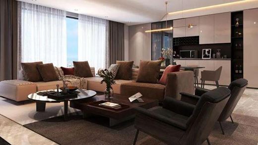 客廳的裝修風格,是關乎家庭“顏面”的事情,也是彰顯主人品味的象征,所以客廳在家裝設計的占比極大。推開家門溫暖的色調映入眼簾,搭配上深色系的軟裝,完美平衡了空間的明暗感覺,使空間的色彩層次與藝術韻律相互映襯,為家體現出一個高品質的“顏面”。