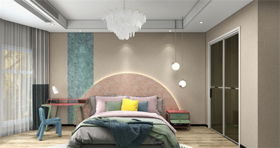 臥室是放松和休息的空間,藝術涂料的選擇應以營造舒適、安靜的氛圍為主。淡雅的色彩如淡藍、米色或淺紫色,可以幫助人們放松心情,準備進入深度睡眠。藝術涂料的柔和質感,如天鵝絨或絲綢效果,可以為臥室增添一份柔和和舒適。同時,墻面的紋理和色彩漸變,也可以創造出寧靜而夢幻的睡眠環境。