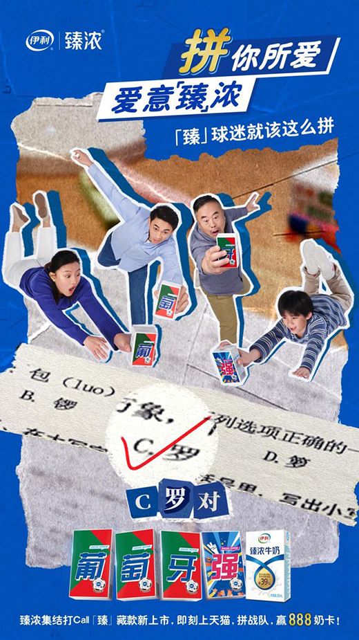 短片中的幾個場景雖然都有戲劇化的時間發(fā)生,都是融入了產(chǎn)品的飲用場景。比如在“板鴨剩”篇,臻濃牛奶是大家外出聚餐時的佐餐飲品;在“C羅對”篇,臻濃牛奶是典型家庭場景中老少咸宜的營養(yǎng)補給。這些場景不但體現(xiàn)了球迷結(jié)構(gòu)的多元化,也讓大家感知到臻濃牛奶飲用人群與球迷群體的高度吻合。