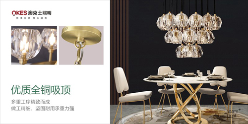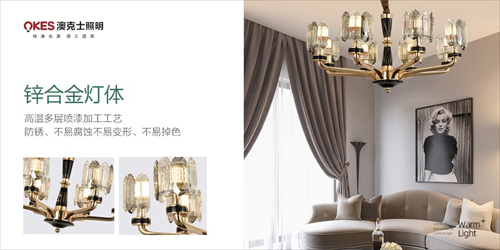 澳克士水晶燈一方面保留了水晶材質的堅硬質感以及色彩基調,傳遞歷史痕跡與文化底蘊,同時又摒棄了過于復雜的肌理和裝飾,簡化了線條,強化了水晶的通透感,價格也更親民。