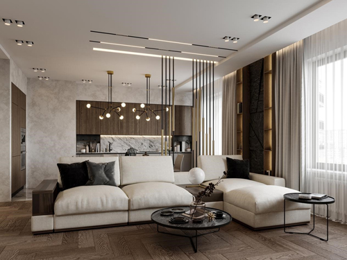 鋒磁天下追月、攬月系列磁吸燈在茶幾、電視機柜等位置內部增加光源,在滿足照明功能的同時,能攫取人們的視覺焦點,打造出輕盈、靈動又不失精致格調的空間語境。直接在墻面或天花上安裝鋒磁天下磁吸燈,通過線條勾勒空間輪廓,其與家居棱角的巧妙組合可以弱化空間的封閉圍合感,從視覺上延伸整個客廳空間,還能起到劃分區域空間的作用。