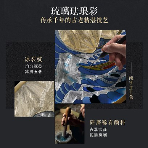 匠人手繪山巒,再研磨稀有顏料純手工上色,精心打磨出亦畫亦燈的琉璃琺瑯彩作品。