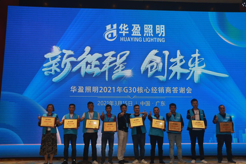 2021年3月15日,華盈照明2021G30核心經(jīng)銷商答謝會(huì)在企業(yè)總部——廣東中山隆重舉行!華盈照明總部拿出品質(zhì)產(chǎn)品及政策誠(chéng)意力邀核心經(jīng)銷商蒞臨現(xiàn)場(chǎng),共同為華盈照明2021年的品牌推廣及市場(chǎng)發(fā)展出謀劃策。
