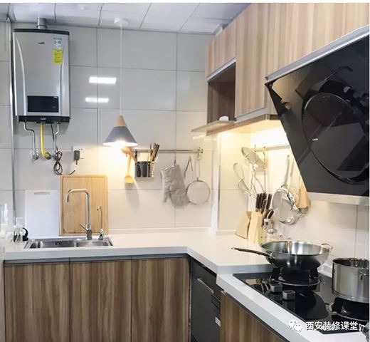 如果主燈亮度夠,但是局部有陰影怎么辦?直接從主燈引線,給水槽上方單獨加個吊燈,滿足晚上洗菜不會背光陰影;鋁扣板吊頂上頭引線非常簡單就可以搞定。