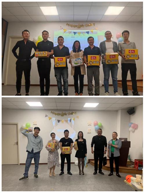 伴隨著歡快的生日祝福歌和躍動的燭光,壽星們誠摯的許下了自己的心愿,大家一起切蛋糕、吃蛋糕。廣銳照明生日活動策劃負責人還為壽星們準備了“暖心”禮物——牛奶、壽桃雞蛋面等。