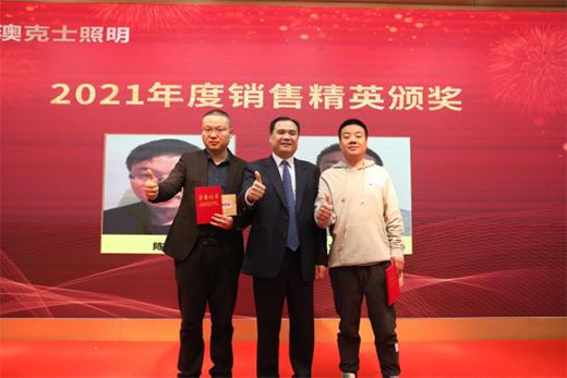 2021年澳克士照明踏著穩健的步伐,步步為營,碩果累累。榮耀背后,離不開一批優秀的管理者和員工,他們揮灑自已的汗水,用激情點燃夢想,用奮斗創造輝煌,締造了一個又一個奇跡。年會現場設置了盛大的頒獎典禮,分別對2021年度“優秀員工獎”、“十年功勛員工獎”、“銷售精英獎”、“優秀管理者獎”等優秀標桿進行隆重加冕。