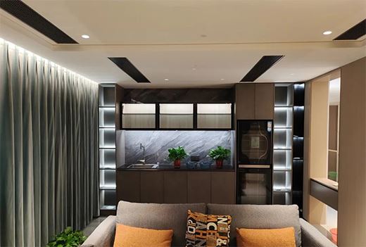 在一個四合空間內的基礎,整體性的燈光設計稱之為環境照明或空間照明,比如設計師經常采用的窗簾盒照明,辦公室公共走廊的下照筒燈,流線空間的地面洗墻燈等。