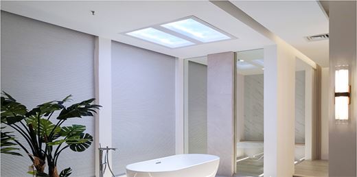 衛生間:浴室照明主要由沐浴區與梳洗區組成,沐浴區域包括沐浴空間和浴盆、坐廁等空間,以柔和的光線為主,梳洗區域由于有梳洗、化妝、剃須和穿衣等功能需求