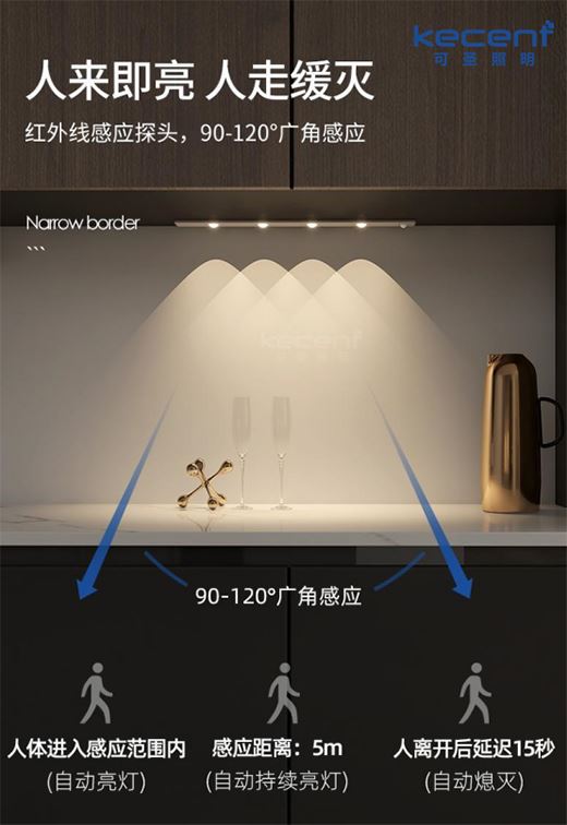 這里稍微展開講講紅外感應這種模式,在日常生活中,燈具的高敏感應球在精準感應到有人走過來后,就會自動亮燈;相對應的,當感應到人離開后,便會自動熄燈。值得一提的是,這種感應模式擁有90-120°的廣角感應,無論人從哪個角度進入感應范圍,燈具都能自動啟動,人離開后也會延遲15s再自動熄燈,真正做到“人來即亮,人走緩滅”。