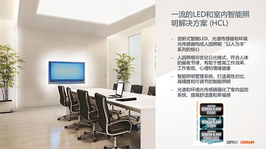 除了室外場景,在室內環境中,主要有辦公室、工廠、酒店、商照、教育照明等,許多人希望能夠通過調整光照從而營造出一種更健康的工作環境。而艾邁斯歐司朗會提供LED光傳感器等去實現整體化的室內照明解決方案。