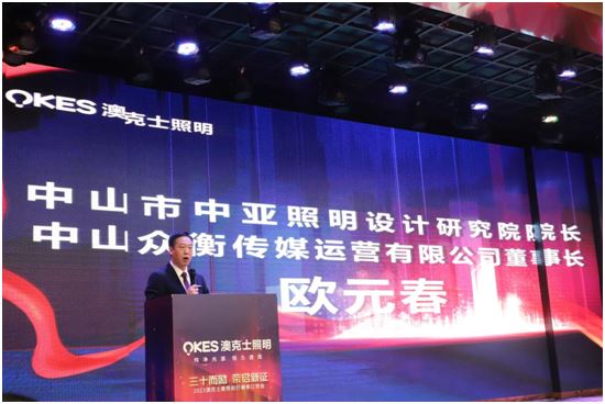 發布會伊始,澳克士照明總經理潘振華先生登臺發表致辭,向在座的經銷商家人們表示熱情問候。潘總表示在澳克士照明成立30周年的慶典之年,凝聚共識是關鍵。潘總以廣闊的視角,深度整體回顧了澳克士照明三十年波瀾壯闊的發展歷史,現場掌聲不斷。