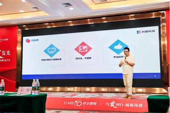 中山市抖商科技有限公司總經(jīng)理王洋分享《抖音同城引流實(shí)戰(zhàn)》。王講師號召全體開爾經(jīng)銷商學(xué)會(huì)短視頻營銷,把握好流量紅利,并從運(yùn)營邏輯、IP定位、賬號建立等方面出發(fā),讓開爾經(jīng)銷商快速了解抖音運(yùn)營的整體邏輯,掌握抖音運(yùn)營的核心技能。