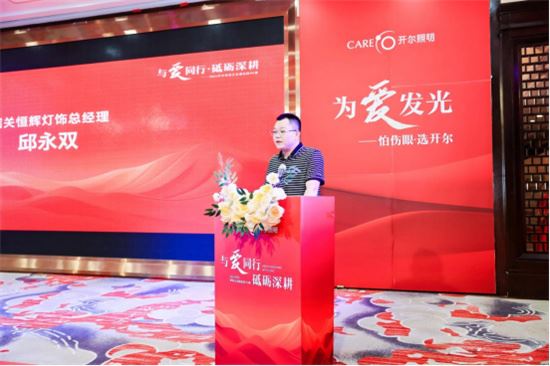 會(huì)議在熱烈的氣氛中開幕,韶關(guān)恒輝燈飾總經(jīng)理邱永雙發(fā)表歡迎致辭。他回顧了韶關(guān)恒輝燈飾的發(fā)展歷程,感謝開爾照明及合作伙伴們的支持與信任。他強(qiáng)調(diào),今年的會(huì)議主題“與愛同行·砥礪深耕”不僅是對開爾照明企業(yè)文化的傳承,更是對市場環(huán)境的精準(zhǔn)把握,市場正在變得更加專業(yè),需要深入了解市場需求,提升專業(yè)能力,希望全體經(jīng)銷商在本次PK賽中全力以赴,助力開爾照明事業(yè)做大做強(qiáng)。